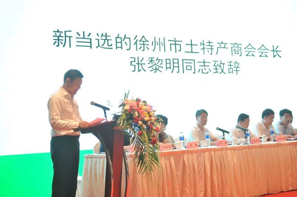 隨后,張黎明會長發(fā)表了重要講話。他在講話中表示,徐州土特產(chǎn)商會成立大會暨第一次會員大會的勝利召開,具有特殊的意義。土特產(chǎn)是一個地方的最為亮麗的名片,我們組織成立徐州市土特產(chǎn)商會,就是要建立一個平臺,促進商會會員之間的緊密合作,把徐州土特產(chǎn)打造成一張更具含金量、更具影響力的特色名片,推動更多徐州地區(qū)的土特產(chǎn)走向全國、走向全球,